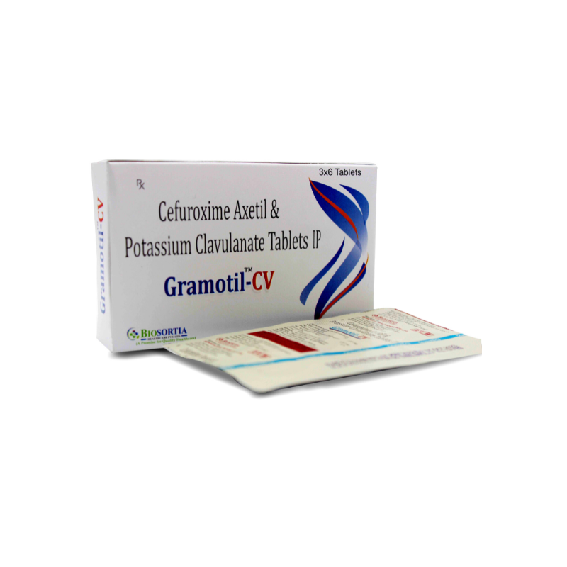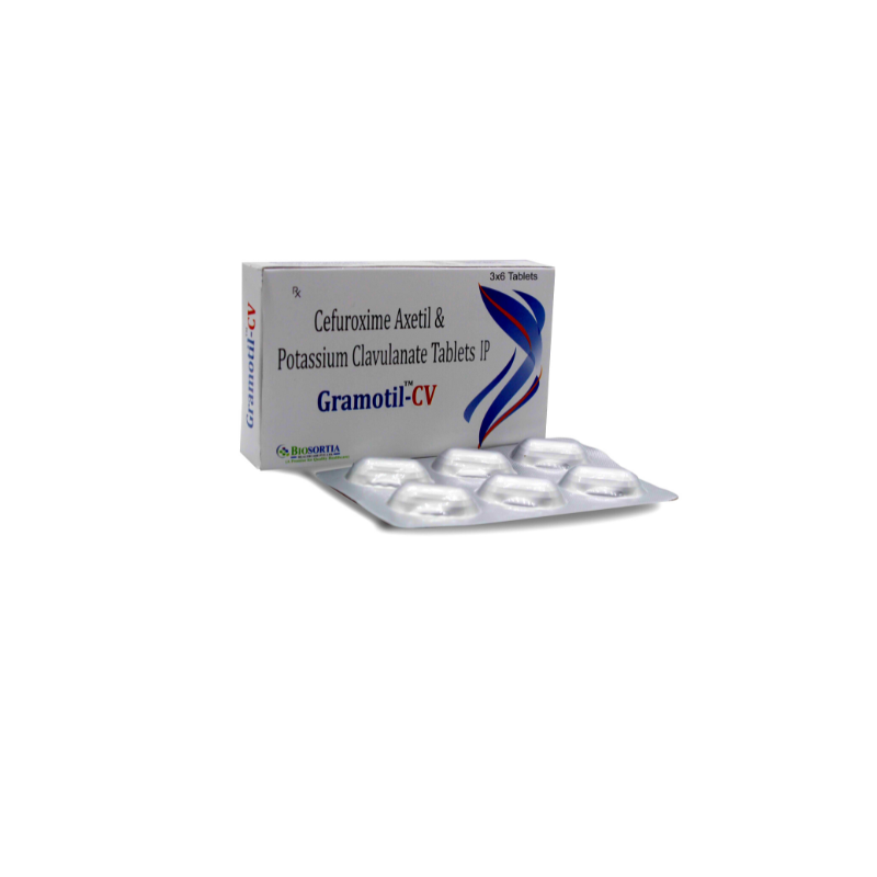 GRAMOTIL CV Tablet contains two different medicines, Cefuroxime and Clavulanic Acid, that work together to kill the bacteria that cause infections. Cefuroxime works by stopping the growth of bacteria. Clavulanic Acid reduces resistance and enhances the activity of Cefuroxime against bacteria.