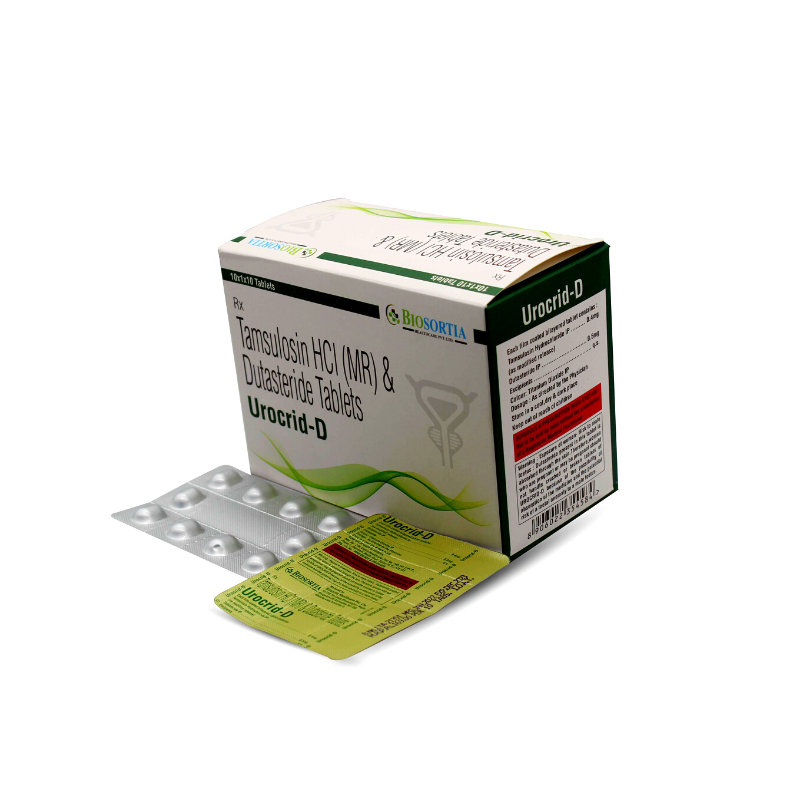 Urocrid DTablet MR is a combination of two medicines: Tamsulosin and Dutasteride, which relieves the symptoms of benign prostatic hyperplasia. Tamsulosin is an alpha-blocker. It works by relaxing the muscle around the bladder exit and prostate gland so as to allow easy passage of urine. Dutasteride is a 5-alpha-reductase inhibitor which helps in shrinking the prostate gland by decreasing the level of the hormone which helps the prostate gland grow.
